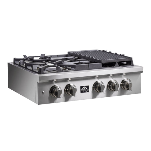 Forno Spezia Alta Qualita 30-Inch Pro-Style Gas Rangetop, Stainless Steel, 5 Sealed Burners, Continuous Cast Iron Grates, High Heat Output