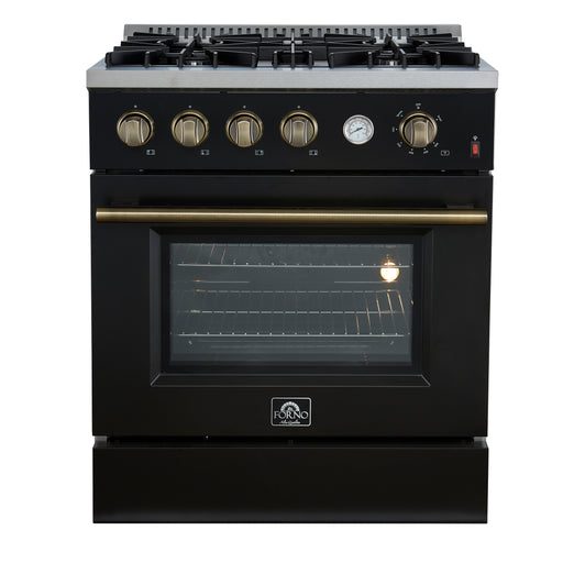 Giovanni 30-inch Gas Range Black & Antique Brass Design, 5 Burners 67,000 BTU, 4.32 cu.ft. Convection Oven