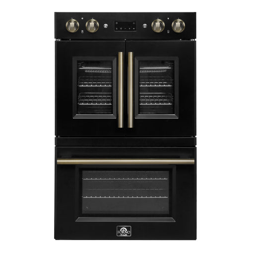 Forno Asti 30-Inch French Door Electric Wall Oven in Black & Antique Brass, 3.68 cu. ft. True Convection, 3,600W, Air Fry, Sous Vide, Self-Clean