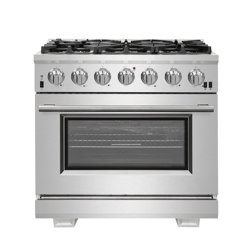 Forno Capriasca 36-Inch Gas Range, Stainless Steel, 6 Brass Burners, 120,000 BTU, Convection Oven, Energy Efficient