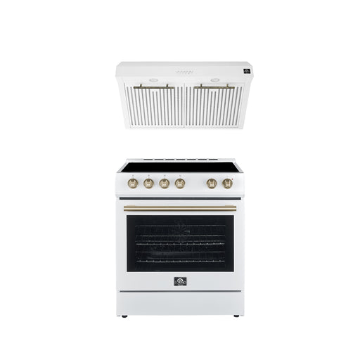 FORNO Premium 2-Piece Kitchen Bundle - Leonardo Espresso 30" White Range, 30" White Range Hood - FBDL-002-03US