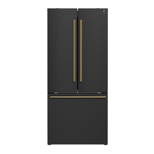 Forno Luigi 33-Inch French Door Refrigerator, 18 cu.ft, Black Finish, Antique Brass Handles, ENERGY STAR Certified