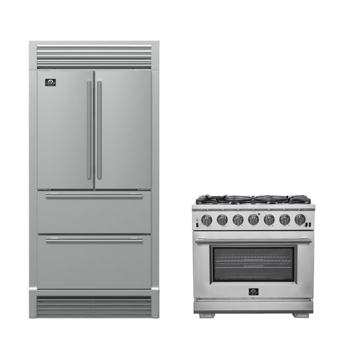 FORNO Premium 2-Piece Kitchen Bundle -Giovanni 30-inch Gas Range Stainless Steel, Forno Moena 36" French Door 19.2 Cu.Ft. Stainless Steel Refrigerator - FBDL-020-02-US