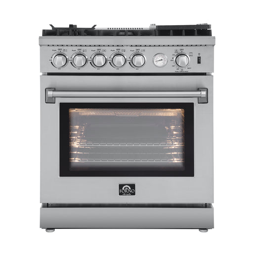 Forno Lazio 30-Inch Freestanding Dual Fuel Range, 4 Burners, True Convection Oven